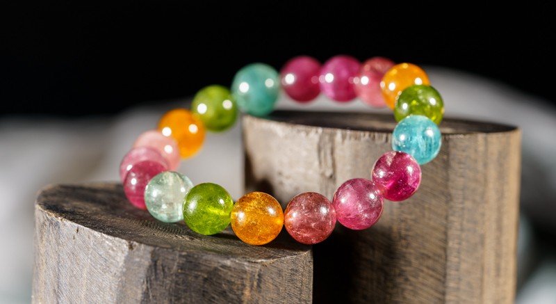 极品碧玺手排 10mm 水晶名称: Crystal Name:  极品碧玺手排 10mm 发货:Ship: 发货为随机发,每条手链珠子颜色和排列都和图片不同,图片只供参考。 「碧玺」(Tourmaline)又称为电气石,是一种混合宝石级别的水晶。它晶体的颜色多样,色彩缤纷,是颜色范围最广泛的水晶之一。「碧玺」的颜色为天然色,有绚丽浓艳的也有渐变和混色的,价格会因色泽,透明度,纯..