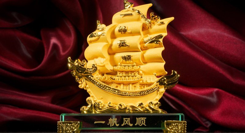 一帆风顺 (大)Safe Sailing Ship (Golden Sanded) - Big Sized